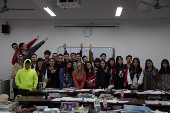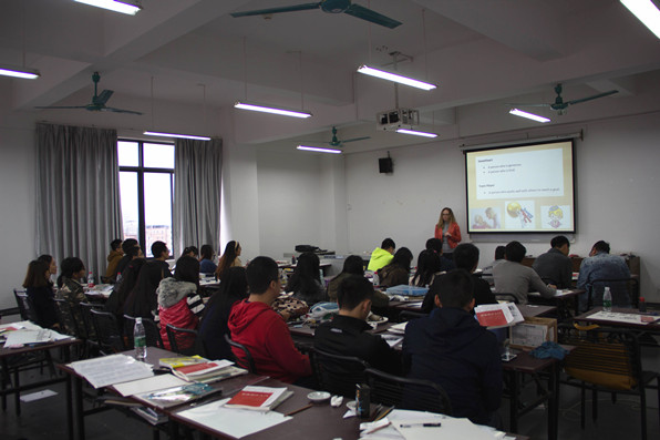 美国西俄勒冈大学派驻其外籍教师KATIE MAE GRAHAM 于11月10日至11月20日来国际教育学院中美班(包括设计学院2013级视觉传达中美班、美术学院2013级绘画中美班、音乐教育学院2013级音乐学中美班)作为期十天的英语学习讲座,针对学生们即将参加的雅思考试和出国的实际需要,重点强化学生的英语听说水平。