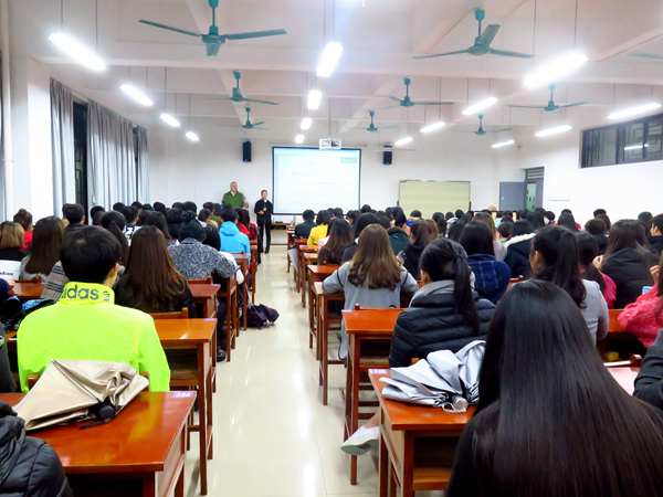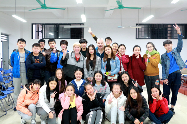 美国西俄勒冈大学派驻其教师凯文·哈儿皮(Kevin C. Helppie)博士,玛丽茹丝·哈儿皮( MaryRuth Helppie )女士与范文女士于12月来我院为设计学院,美术学院,音乐学院,音乐教育学院的中美班同学们授课。